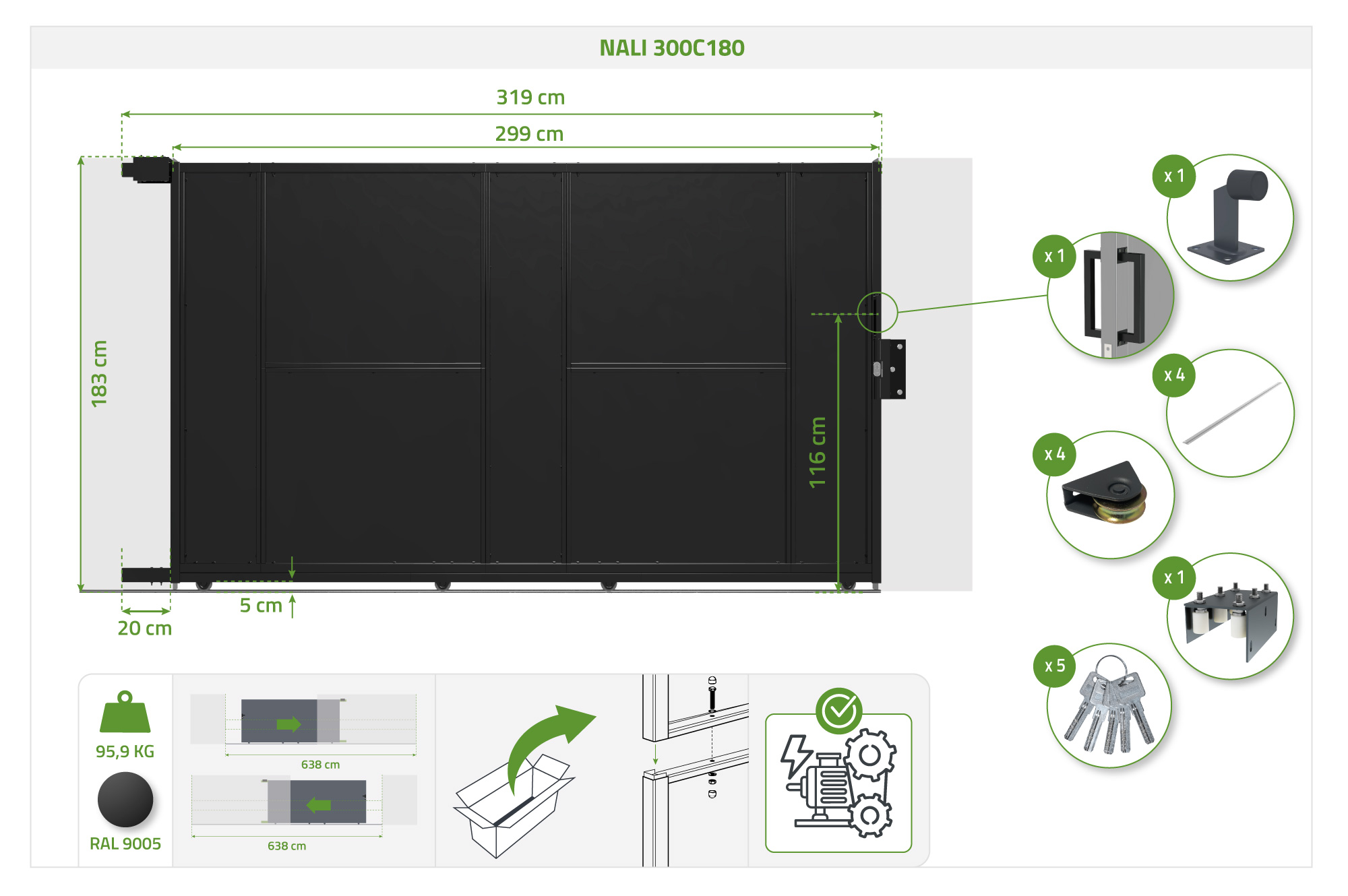 Oceľová posuvná brána NALI 3m, výška 180 cm, čierna